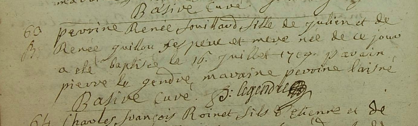 Naissance : 16 juillet 1719 à La Bazouge-Du-Désert 35420