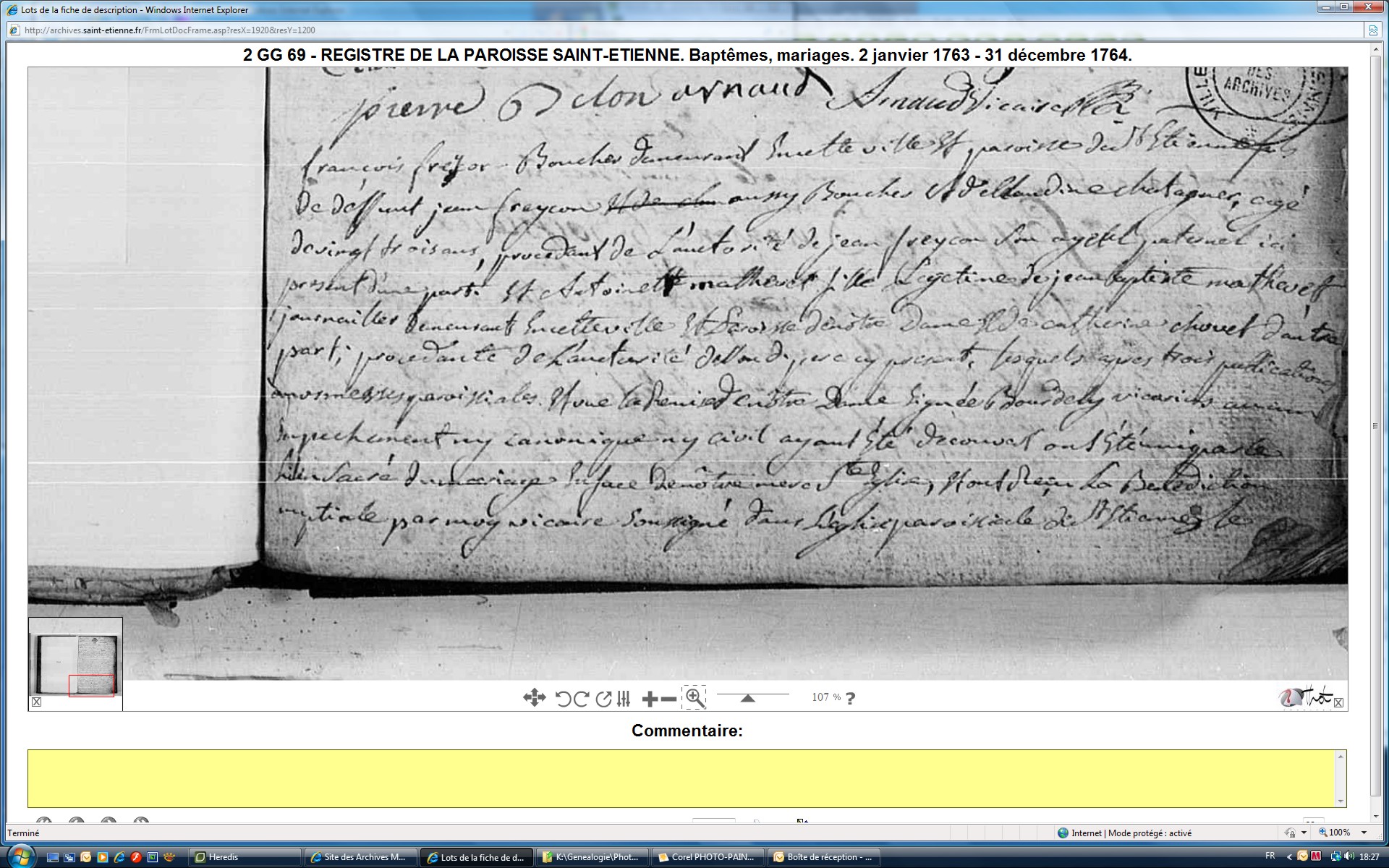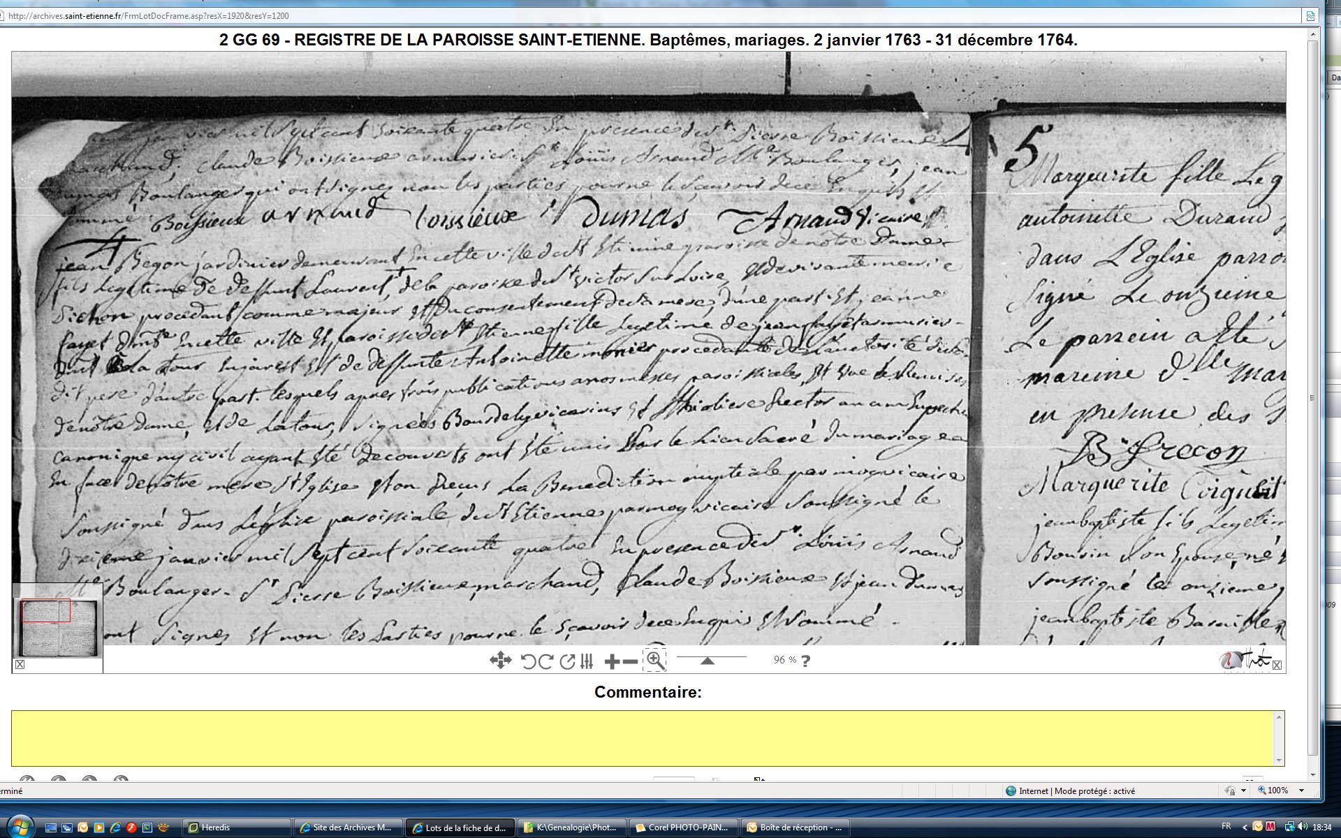 Mariage : 10 janvier 1764 à Saint-Étienne 42100