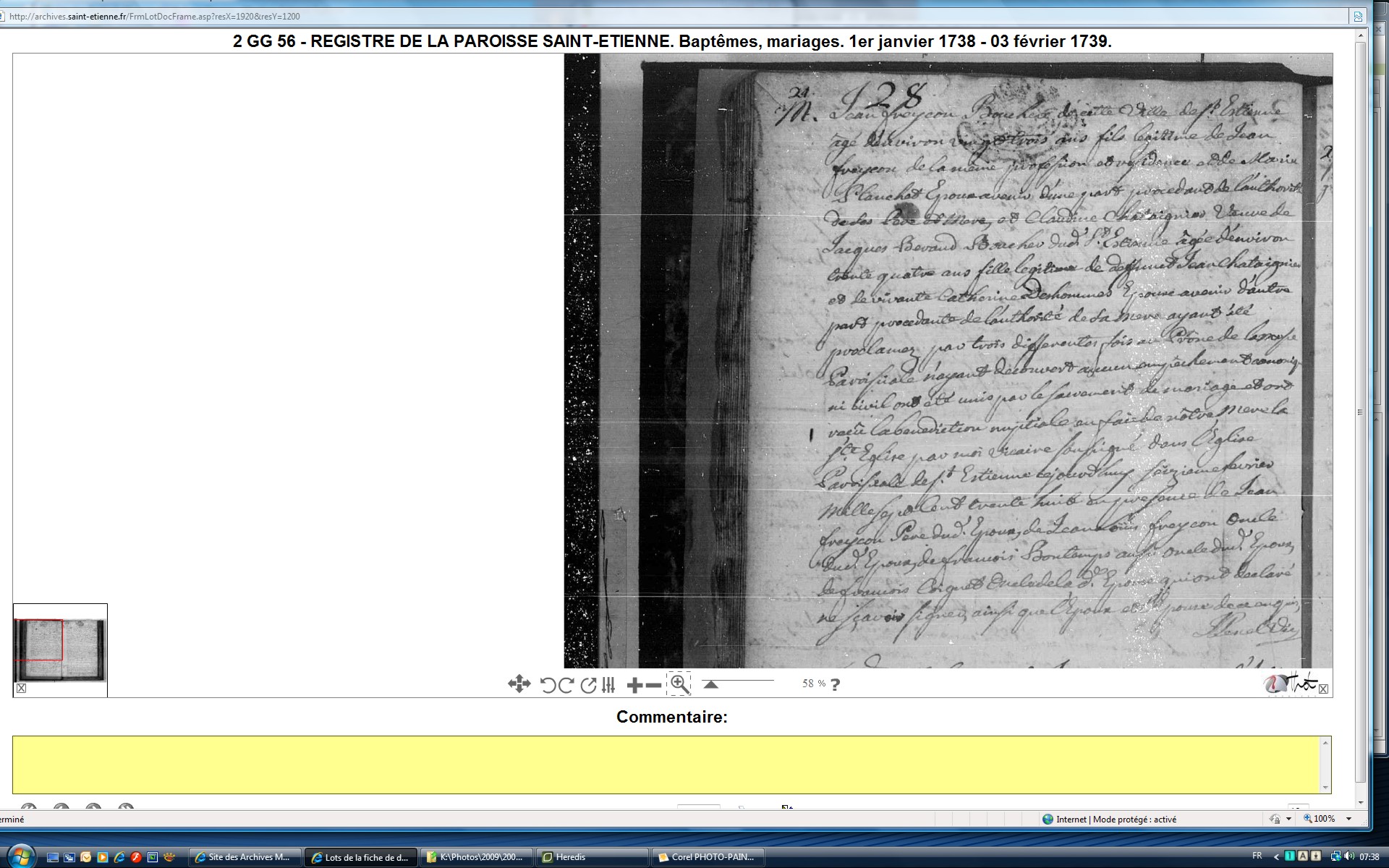Mariage : 16 février 1738 à Saint-Étienne 42100