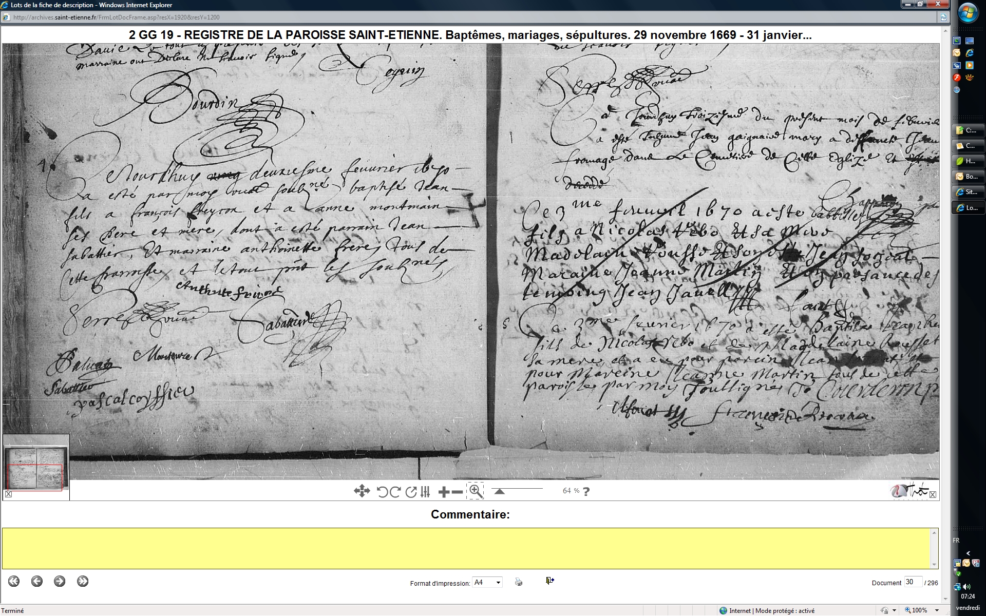 Naissance : 2 février 1670 à Saint-Étienne 42100 Paroisse Saint-Etienne