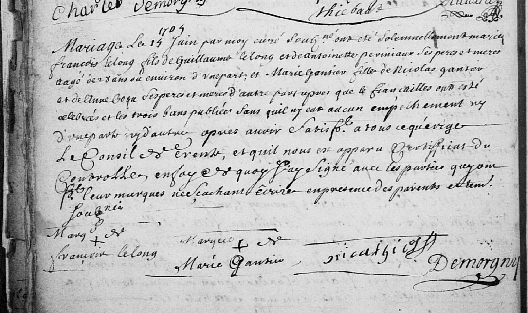 Mariage : 15 juin 1705 à Saint-Michel 02830