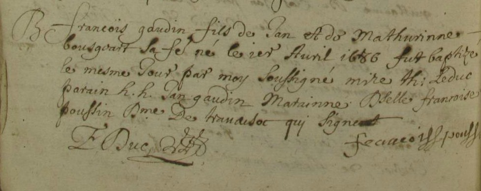Témoins :GAUDIN Jean ( < 1636 - > 1686 )
