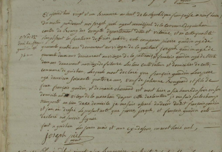 Décès : après 9 octobre 1785 à Guichen 35580