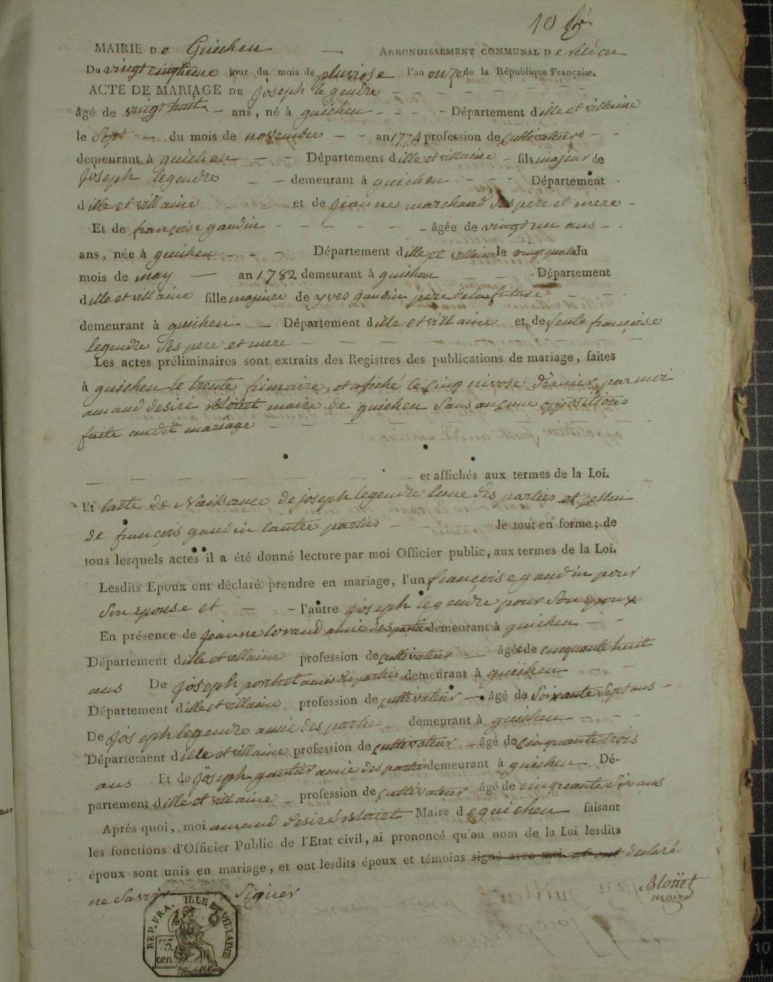 Mariage : 25 pluviôse an XI à Guichen 35580