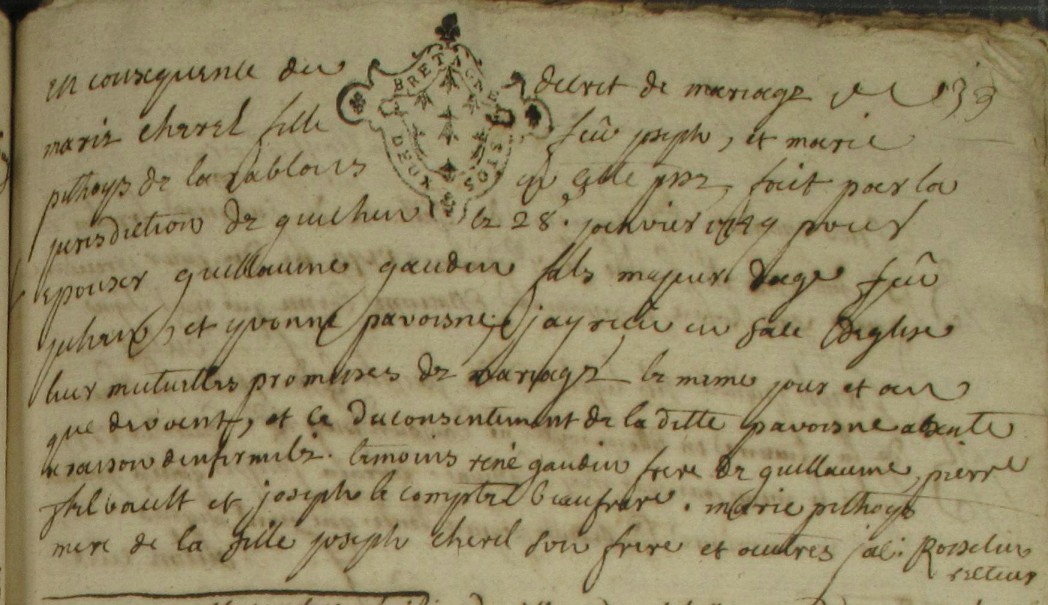 Témoin :GAUDIN Guillaume ( 1717 - > 1753 )