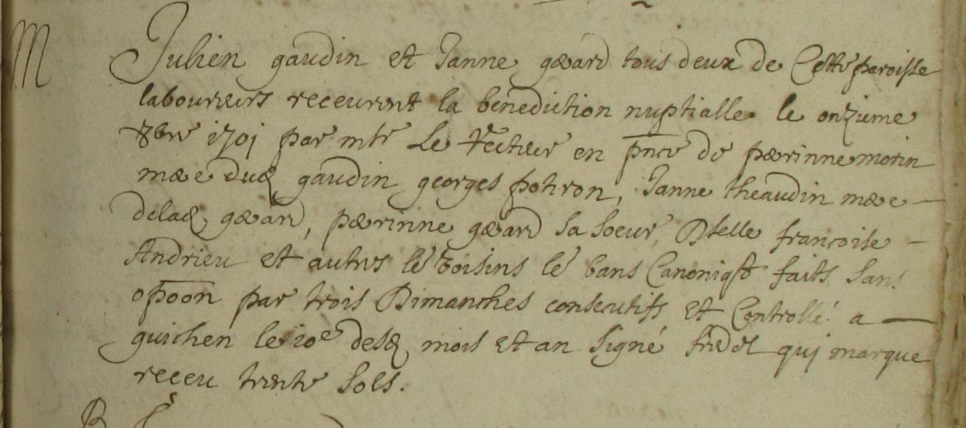 autre couple Julien GAUDIN et Perrine JUDEAUX ° Marie Marguerite 25/7/1703 Guichen