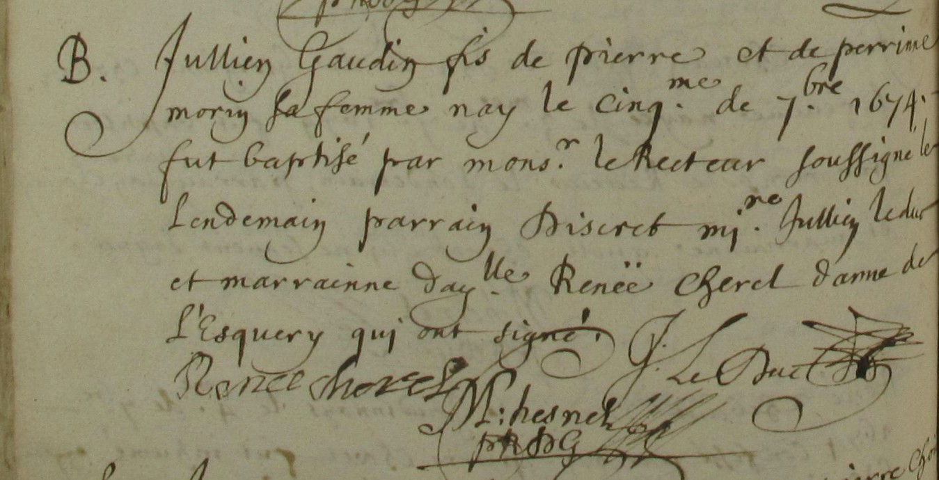 Témoins :LEDUC Julien ( < 1617 - 1696 )