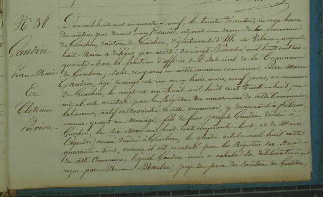 Mariage : 30 décembre 1859 à Guichen 35580