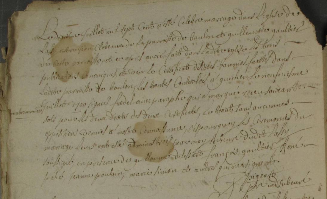 Mariage : 9 septembre 1698 à Bazouges-La-Pérouse 35560