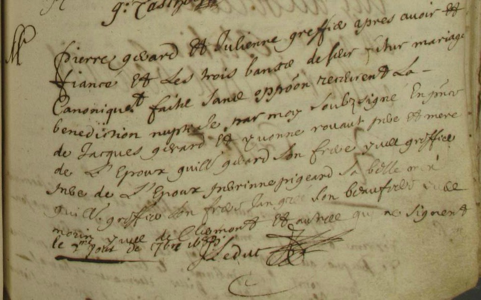 Témoins :GERARD Pierre ( 1640 - > 1703 )