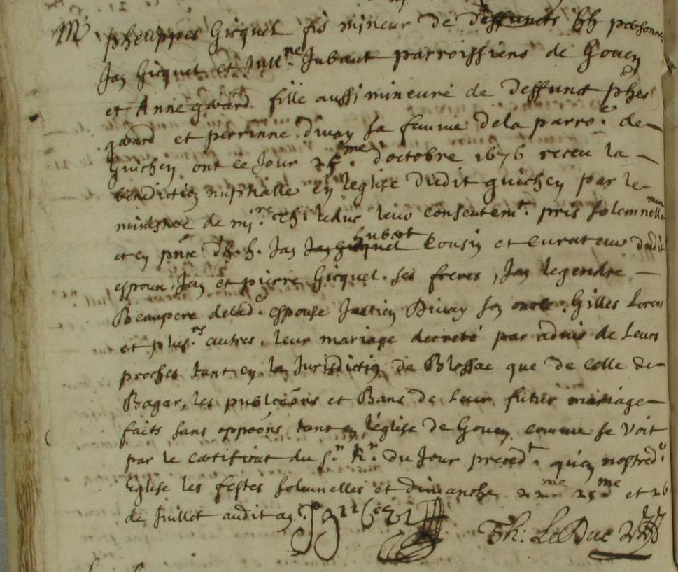 Mariage religieux : 25 octobre 1676 à Guichen 35580