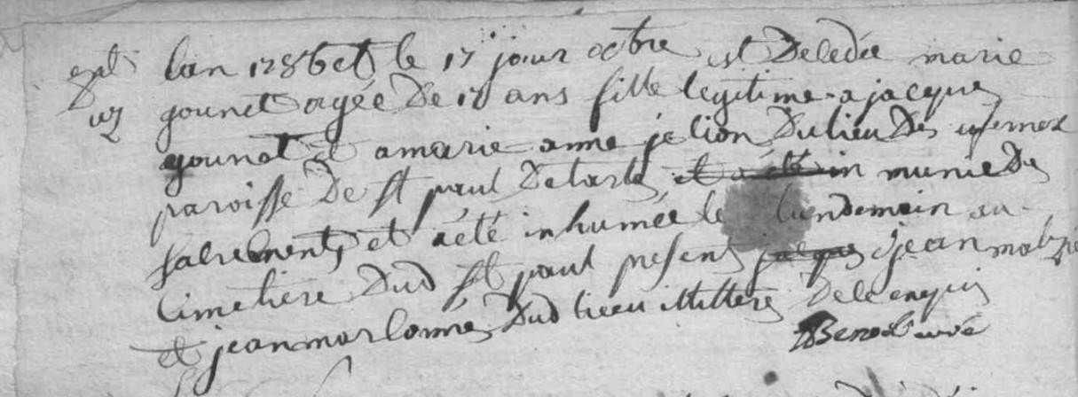 Décès : 17 octobre 1786 à Saint-Paul-De-Tartas 43420 Les Uffernets