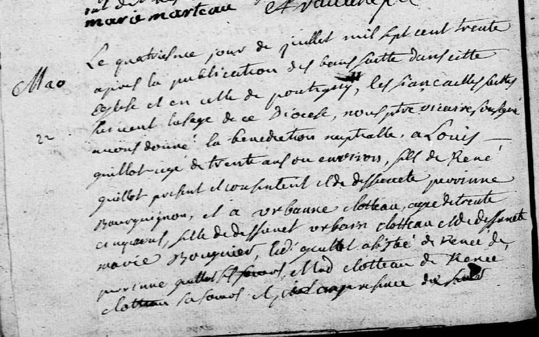 Mariage religieux : 20 juin 1695 à Poitiers 86000 Saint Germain