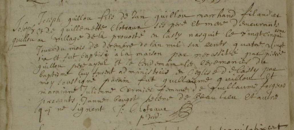 Naissance : 25 décembre 1686 à Lassy 35580 Village de la Provosté