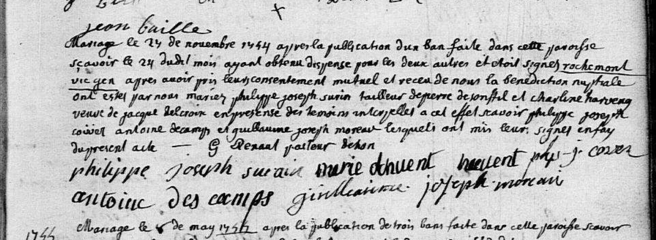 Marie Caroline s'est remariée le 24 novembre 1754, , HON HERGIES, 59, NORD, ,, avec PHILIPPE SURIN †1809 (Parents : NICOLAS SURIN & MARIE RECLOU)