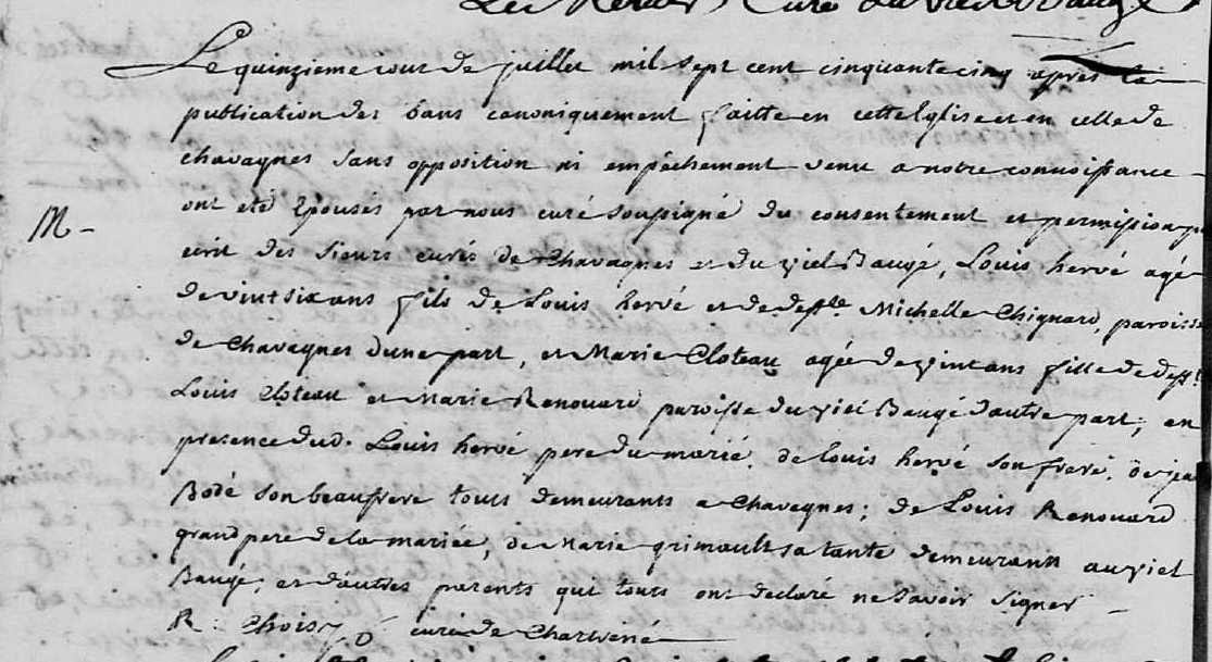 Mariage : 15 juillet 1755 à Le Vieil Beaugé 49372