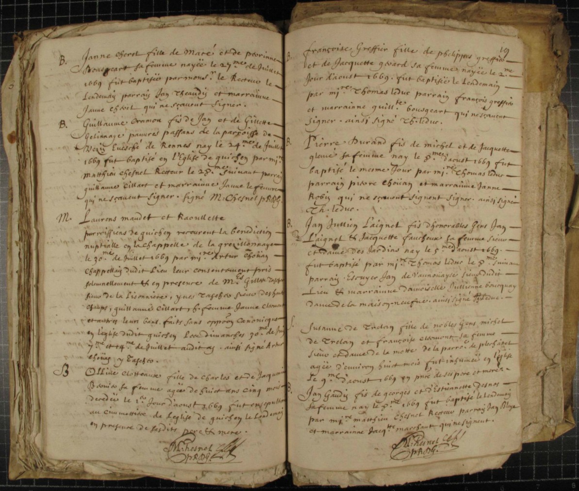 Mariage religieux : 30 juillet 1669 à Guichen 35580 chapelle de la Grezillonnays