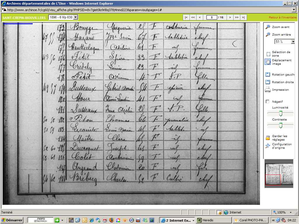 Naissance : vers 1857 à Méru 60110 Domicile : 1876 à Saint-Crépin-Ibouvillers 60149 80 Ibouvillers