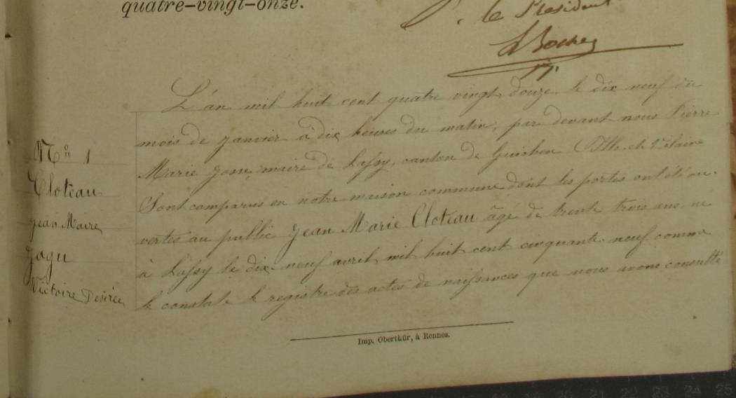 Union : CLOTEAU Jean Marie ( 1859 - > 1902 )