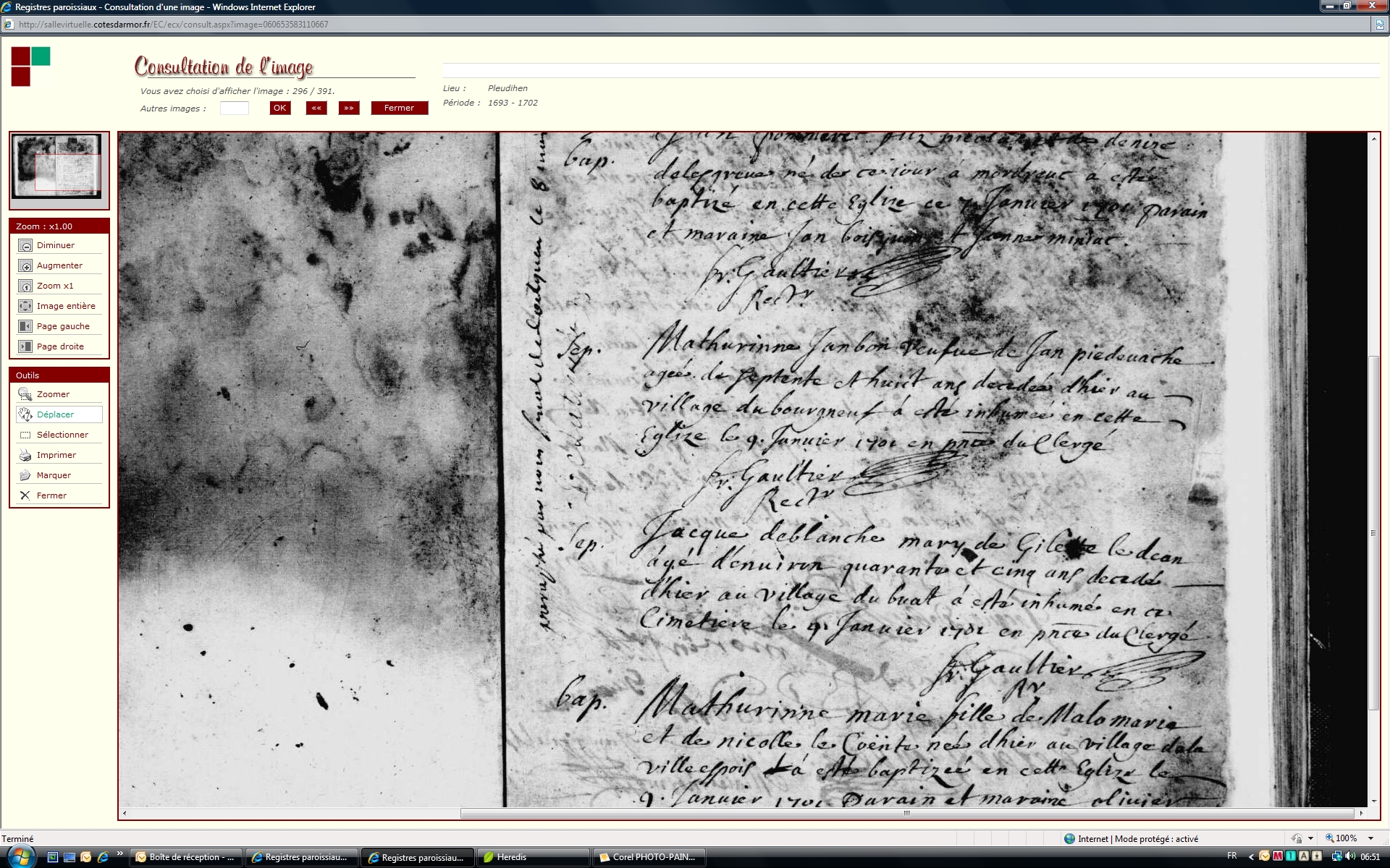 vers 1623Décès : 8 janvier 1701 à Pleudihen-Sur-Rance 22690 bourgneuf