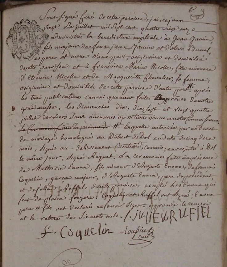 Père : JAMIN Julien ( 1696 - < 1758 )