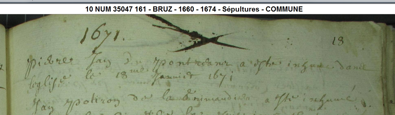 Naissance : à Guignen 35580 Pont Réan Décès : 18 janvier 1671 à Bruz 35170 Eglise