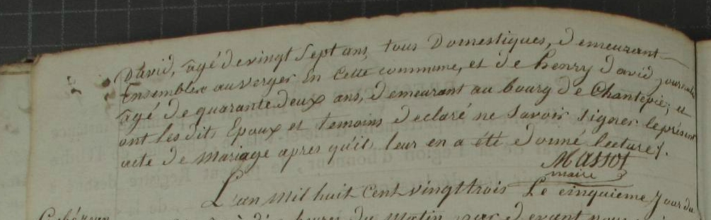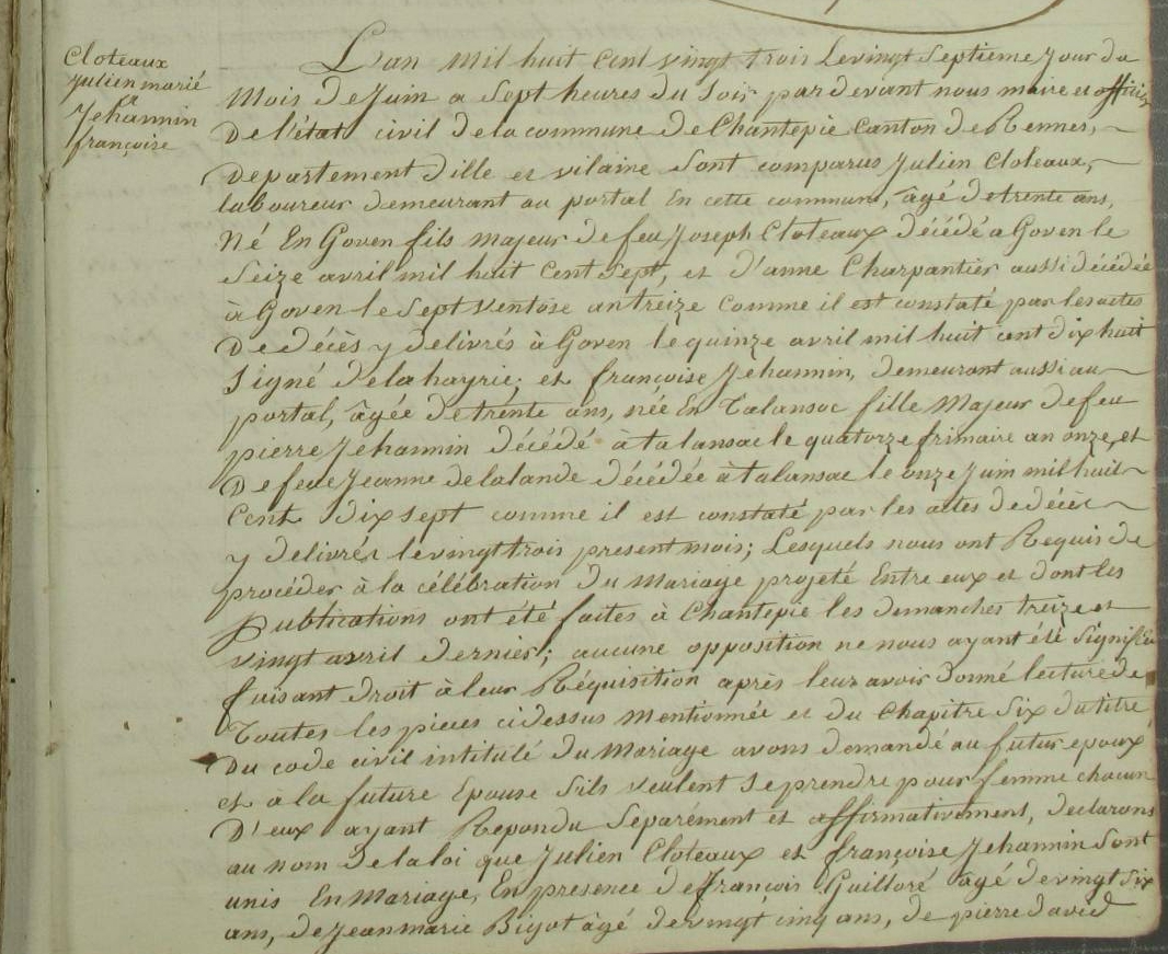 Mariage : 27 juin 1823 à Chantepie 35135