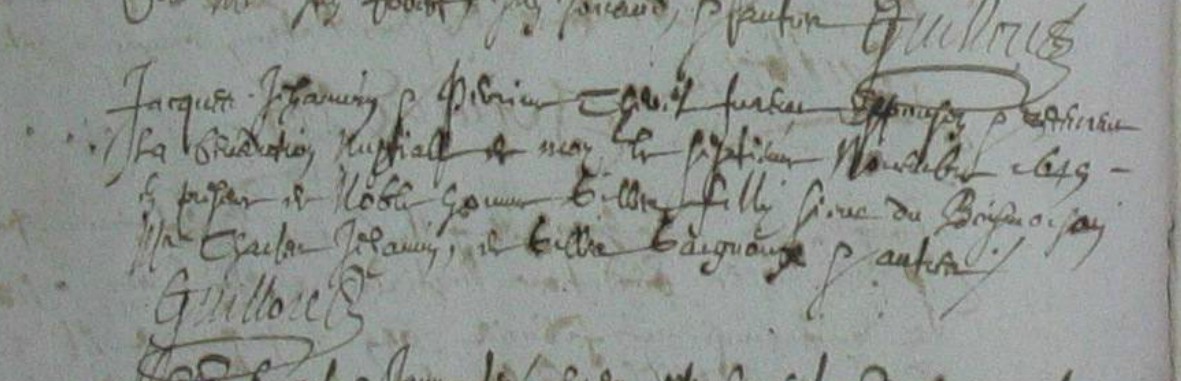 il signe C~h:Jehanniyn(gribouilli)Décès : 2 mai 1651 à Goven 35580 Cimetière