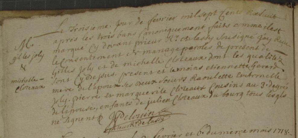 Père : JOLY Gilles ( < 1700 - > 1720 )
