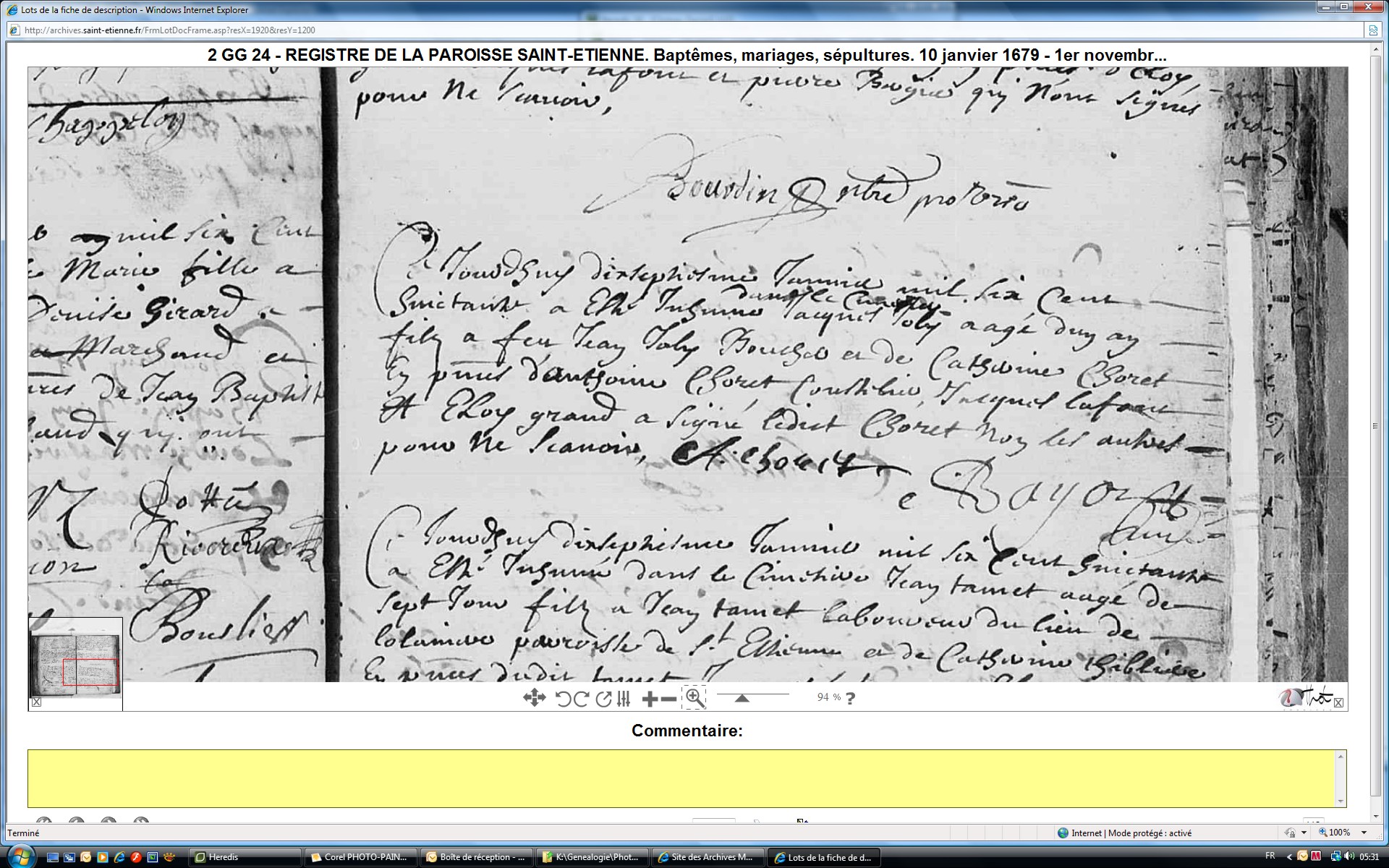 Naissance : calculée 1678 à Saint-Étienne 42100 Décès : 17 janvier 1680 à Saint-Étienne 42100
