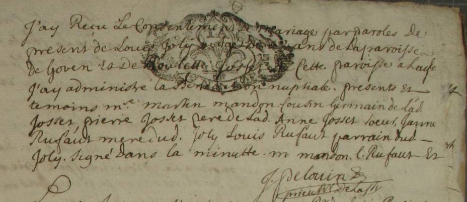 Mère : SEGUINIAUX Jeanne ( < 1674 - > 1707 )