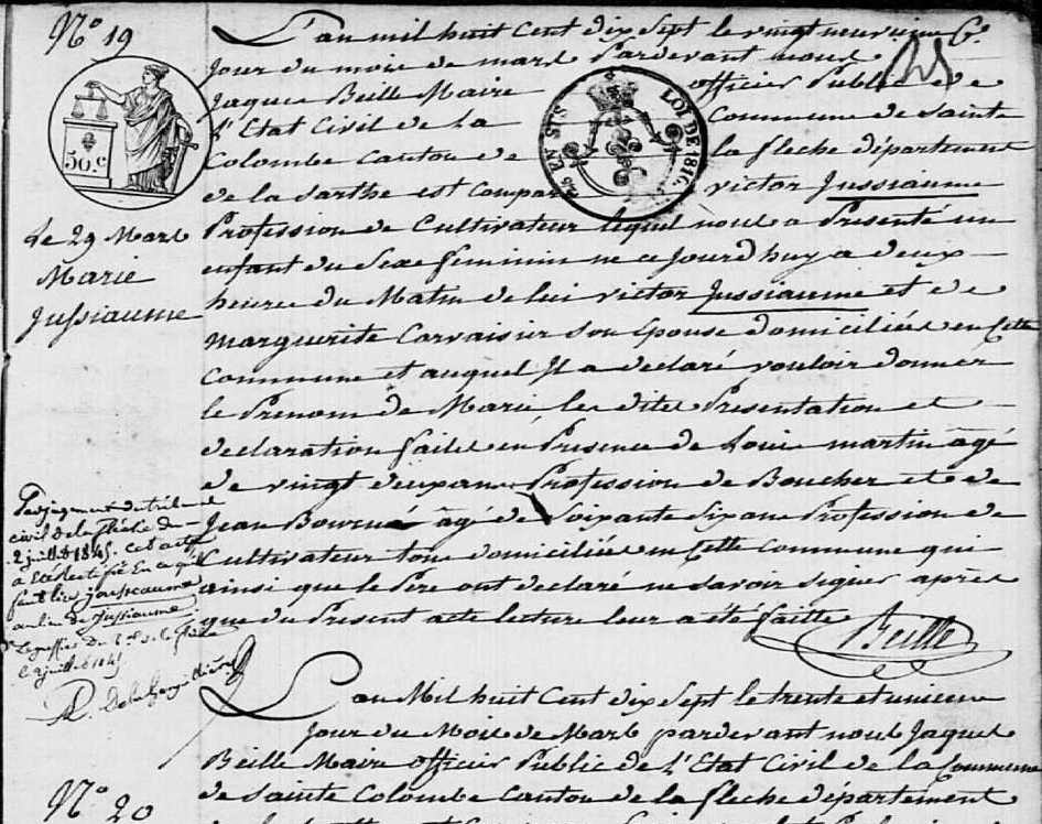Naissance : 29 mars 1817 à La Flèche 72200 Sainte Colombe