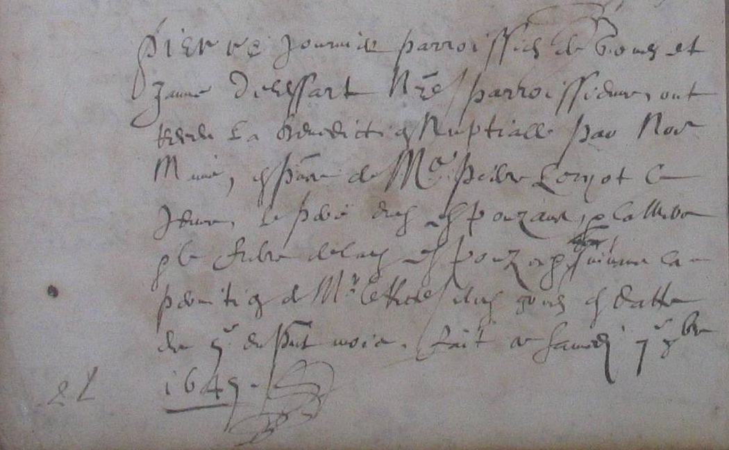 Mariage : 7 octobre 1645 à Saint-Thurial 35310