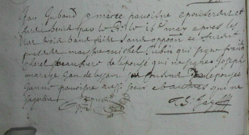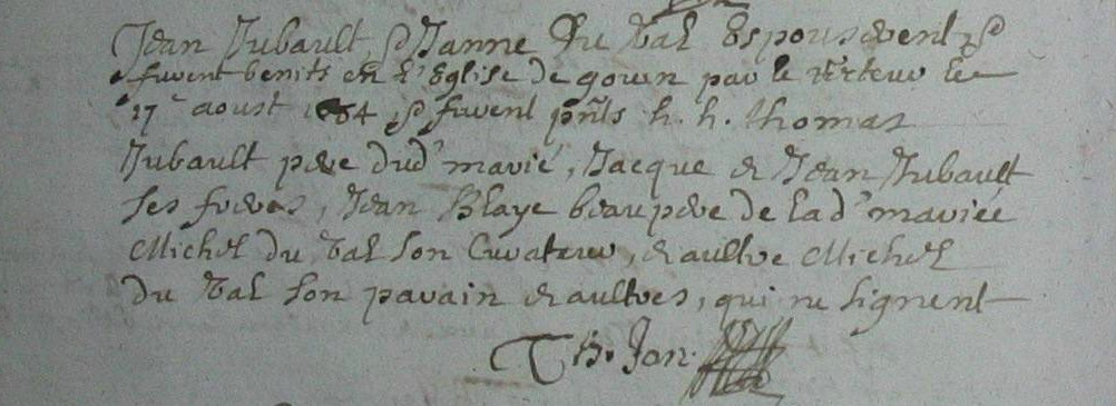 il signe : Jjubault3(fleur)Décès : après septembre 1679 à Goven 35580