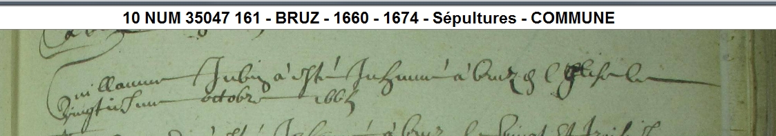 Décès : 20 octobre 1665 à Bruz 35170 Eglise