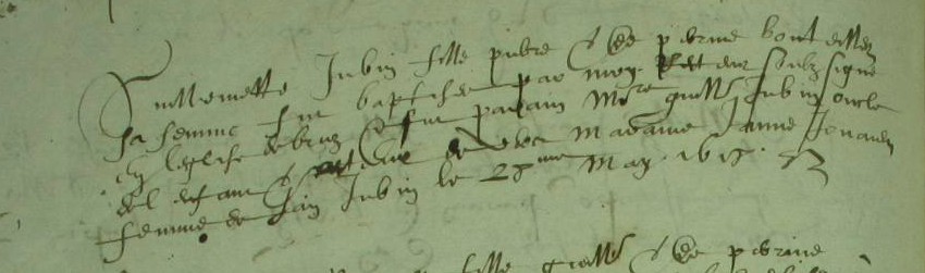 Père : JUBIN JOUBIN Julien ( < 1615 - > 1641 )