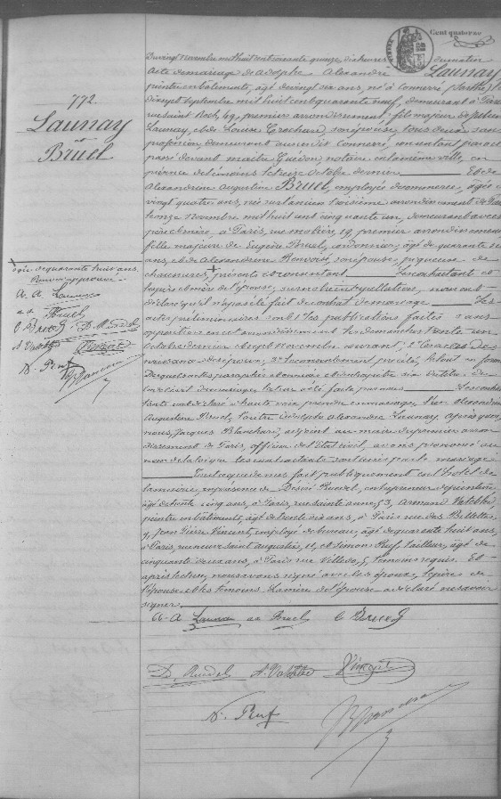 Mariage : 20 novembre 1875 à Paris 1er 75101