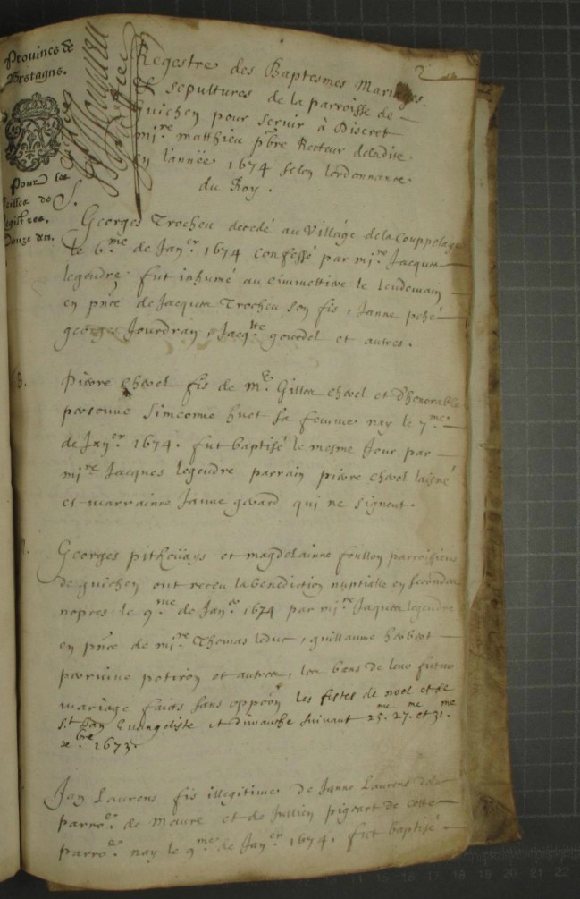 Baptême : avant 1643 à Guichen 35580 Inhumation : après 31 août 1670 à Guichen 35580