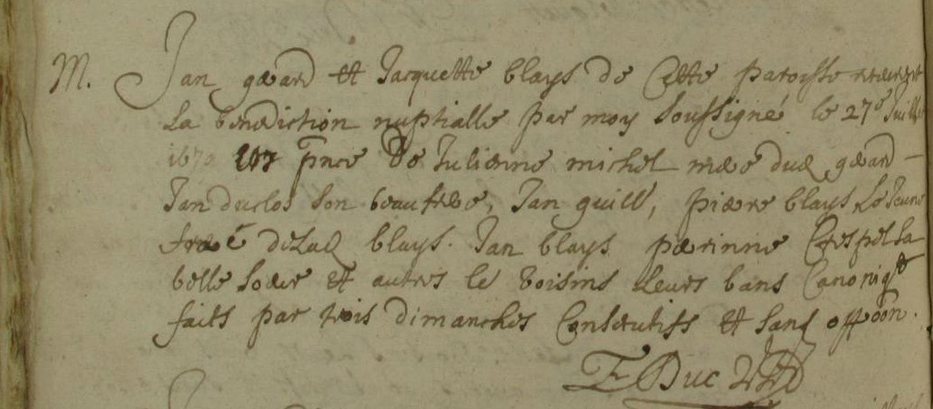 Mariage religieux : 27 juillet 1679 à Guichen 35580