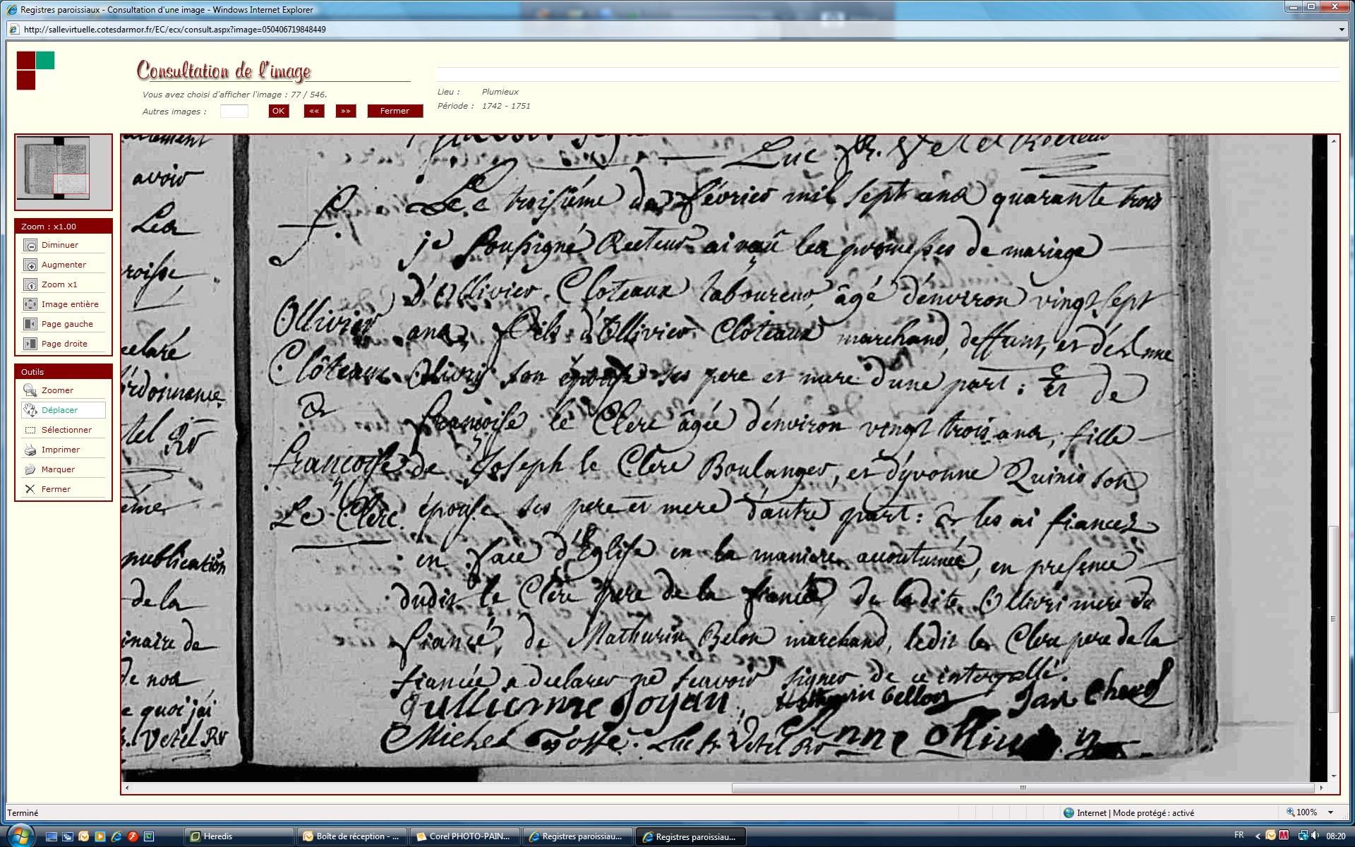 Mariée le 21 février 1743, PLUMIEUX BREIZH, avec OLIVIER CLOTEAUX