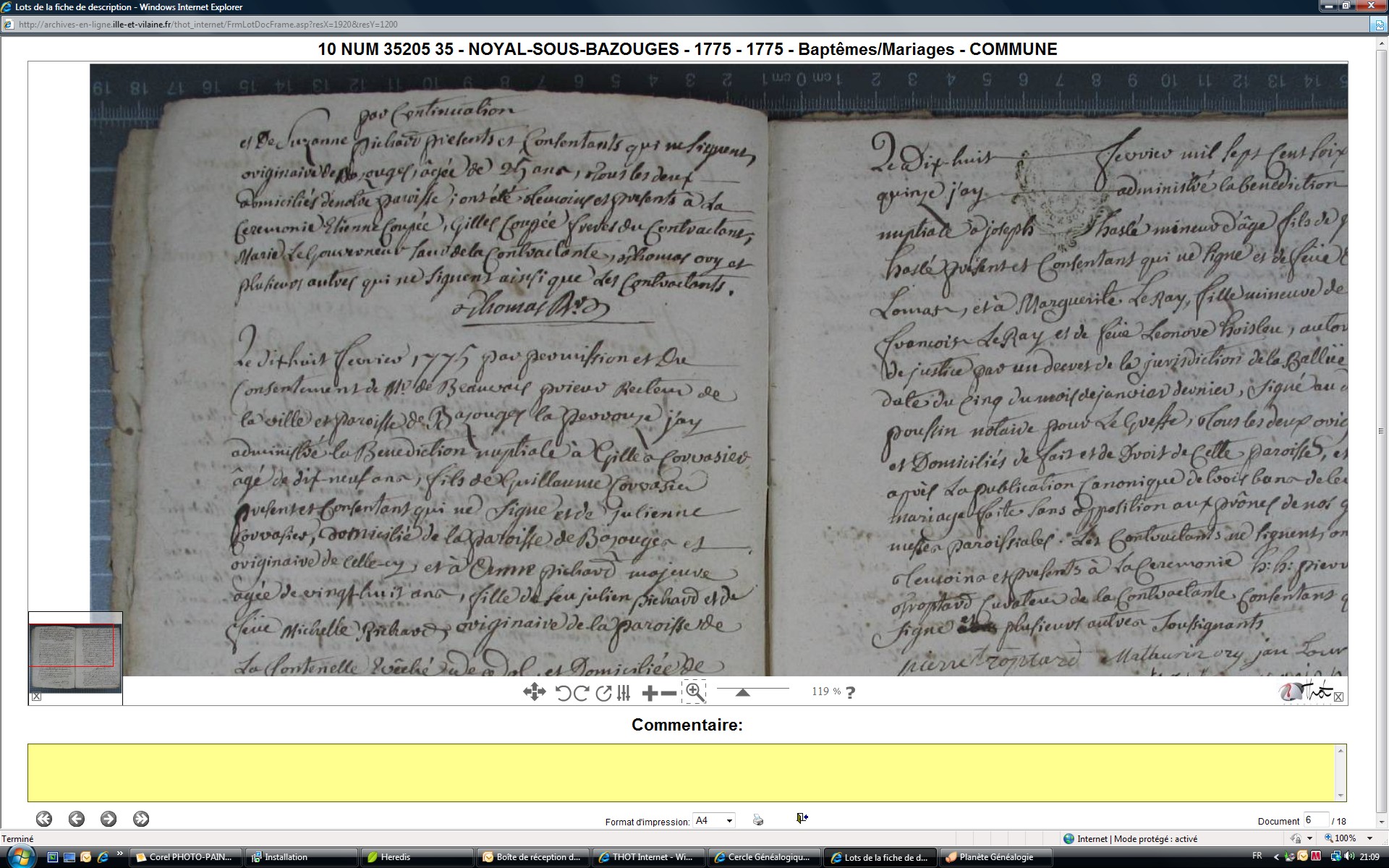 Mariage : 25 février 1775 à Noyal-Sous-Bazouges 35560