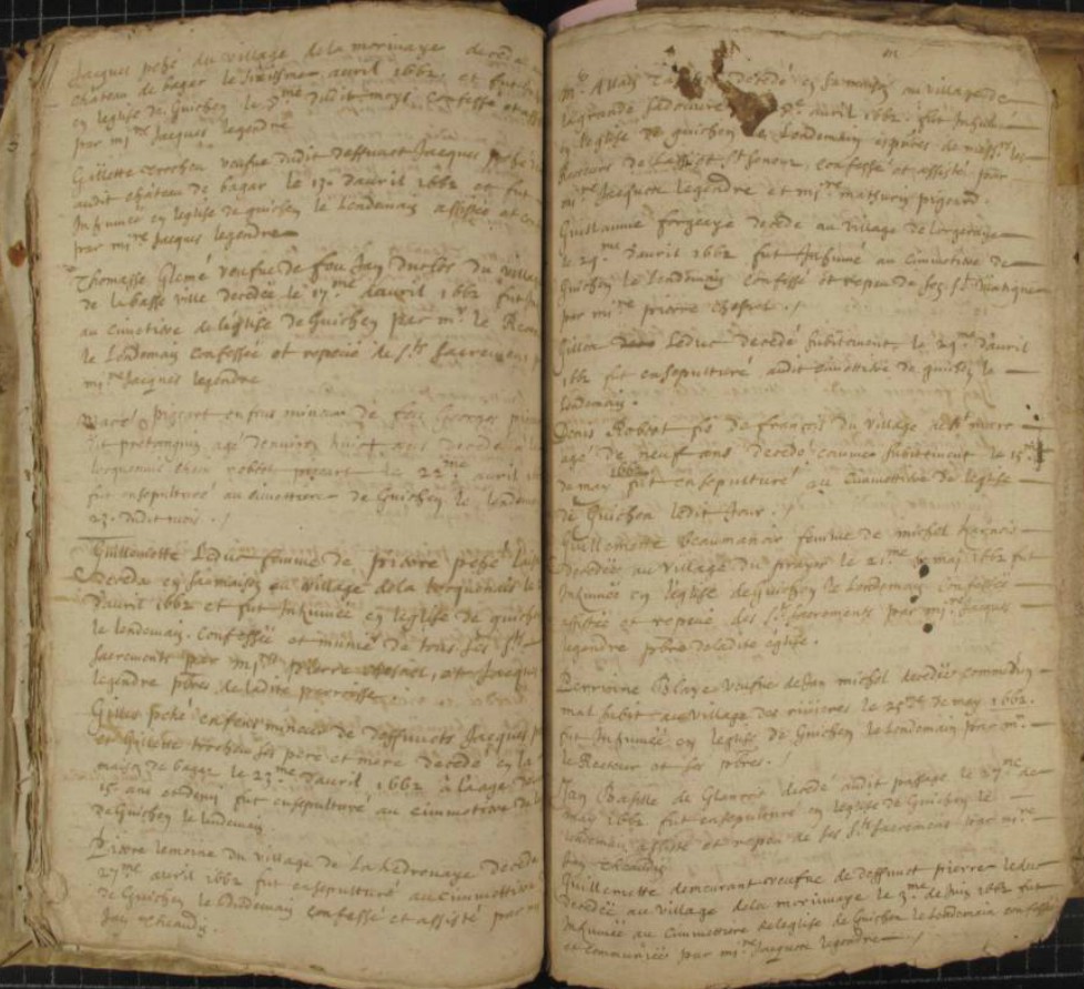 Baptême : avant 1605 à Guichen 35580 Inhumation : 25 mai 1662 à Guichen 35580 village des rivières