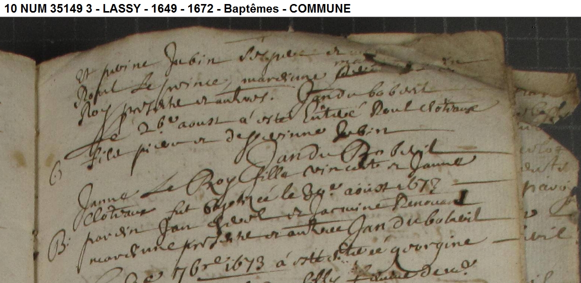 Père : LE ROY Vincent ( < 1653 - < 1679 )