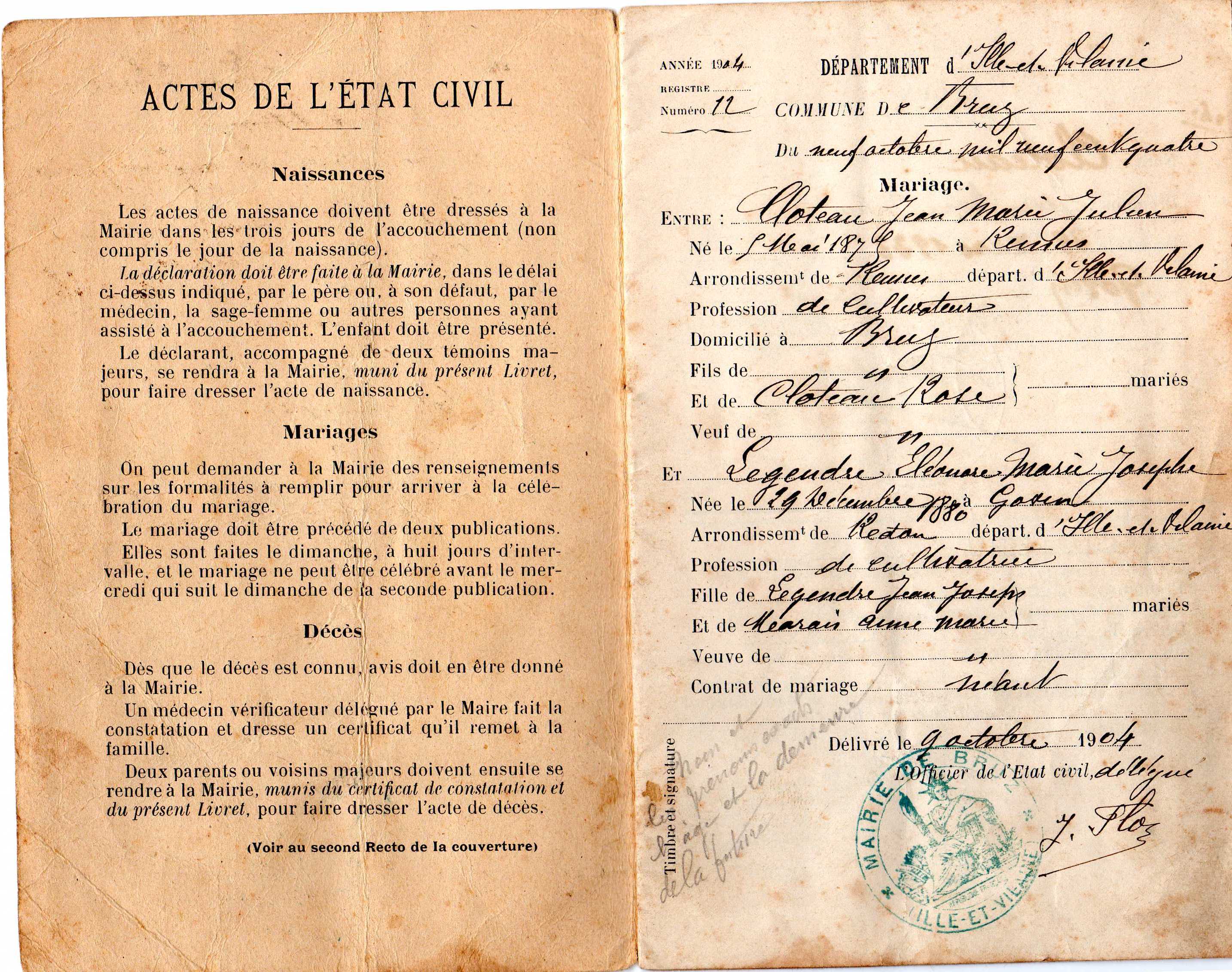 Naissance : 9 décembre 1809 Décès : 9 décembre 1809 à Guignen 35580 Roche Blanche