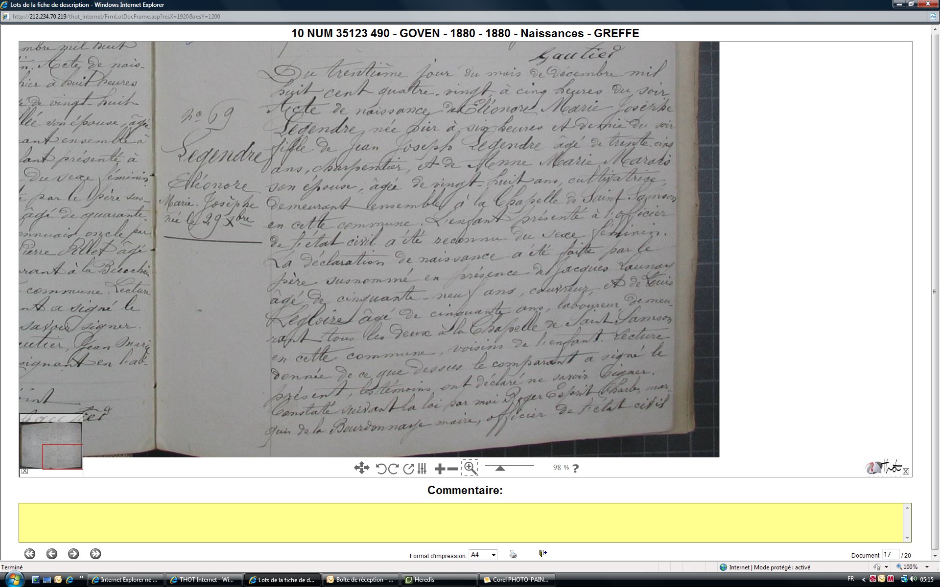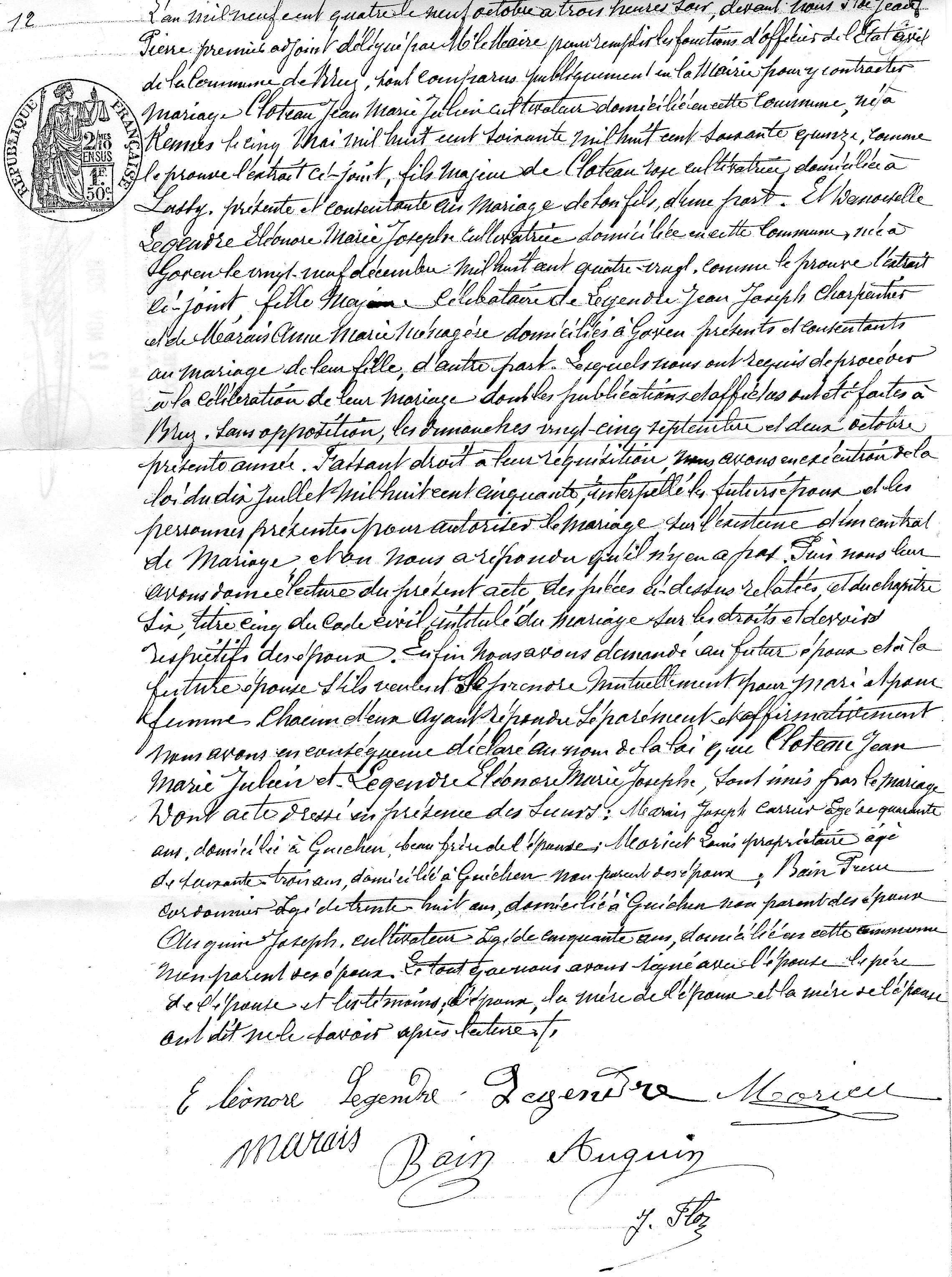 Père : LEGENDRE Jean François ( 1819 - 1890 )