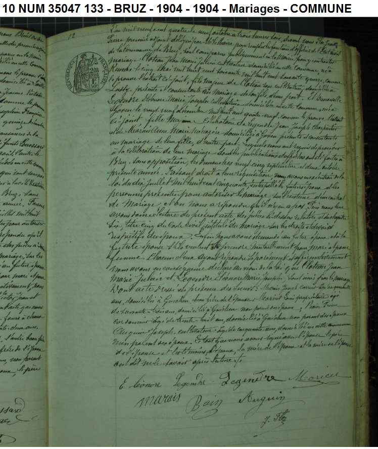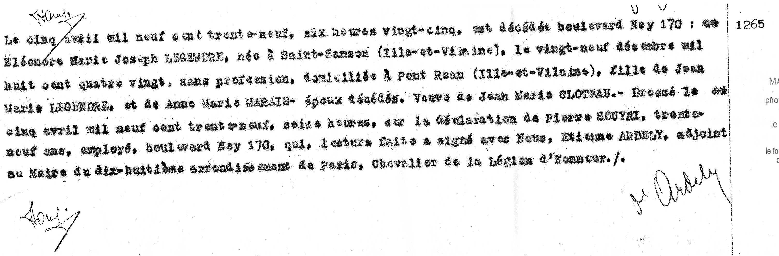 Père : LEGENDRE Jean (Marie) Joseph ( 1845 - <> 1904 & 1939 )