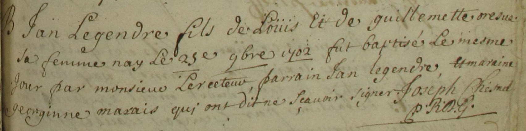 Témoins :LEGENDRE Jean ( < 1682 - > 1708 )