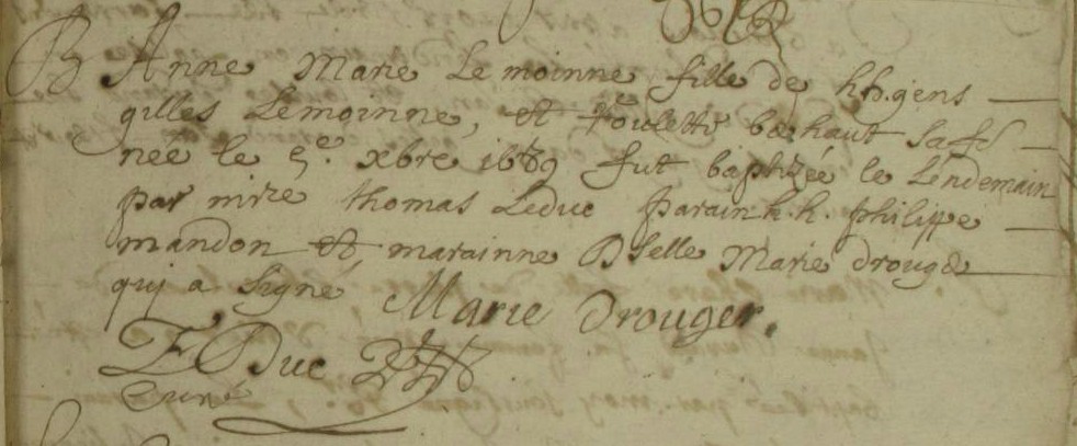 Témoins :DROUGET Marie ( < 1677 - > 1689 )