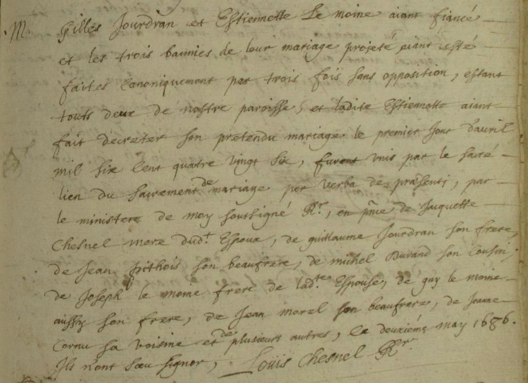 Témoins :CHESNEL Jacquette ( (c) 1614 - 1694 )