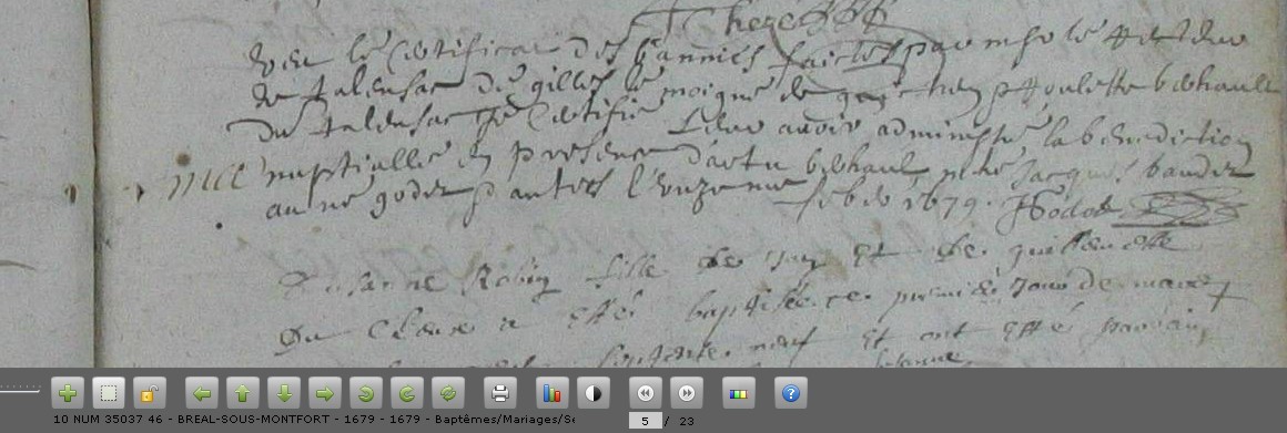 Mariage : 11 février 1679 à Bréal-Sous-Montfort 35310